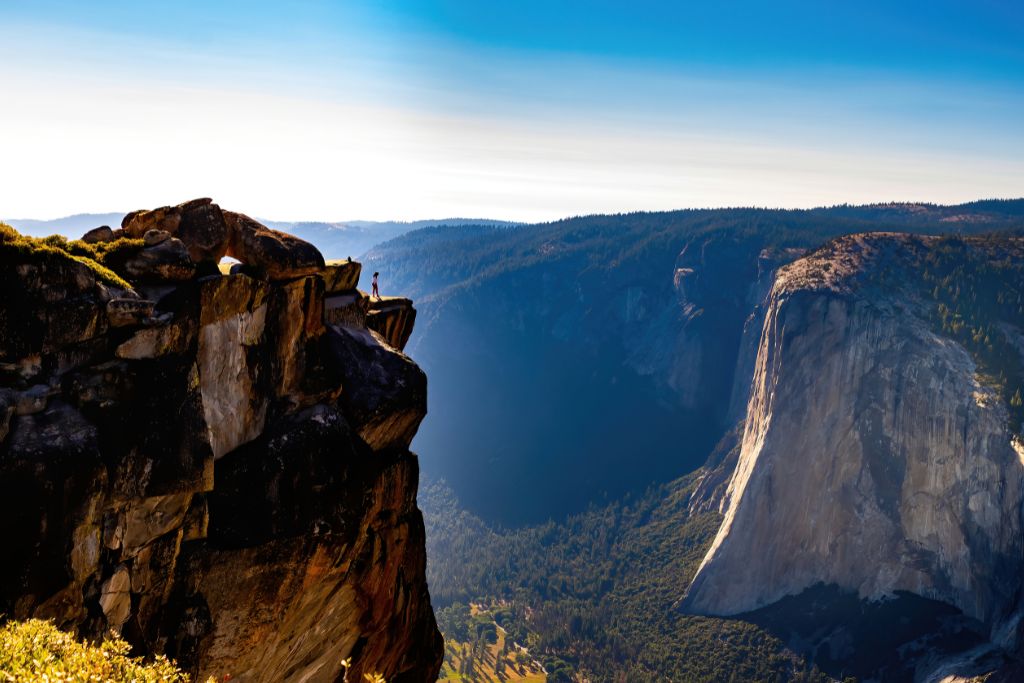 Taft Point is also home to a tiny rock ledge. You can see the Merced River and El Capitan across from it. You can see the rocks below the cliff and watch the sunset.
